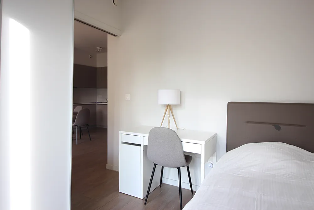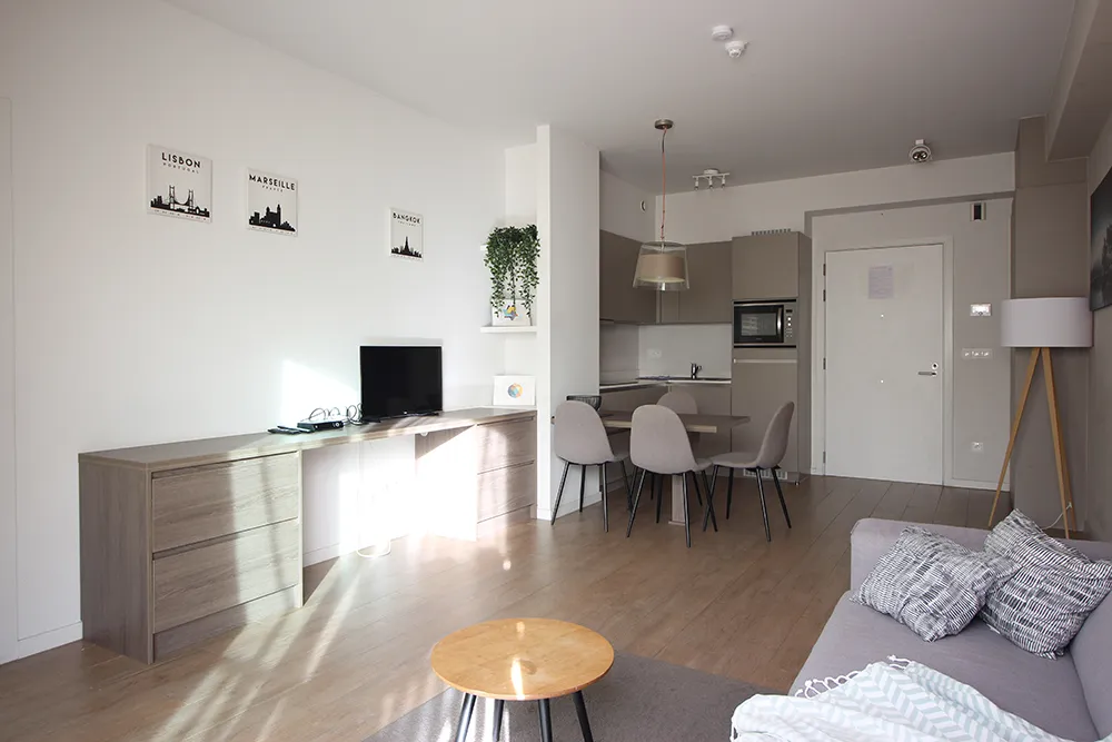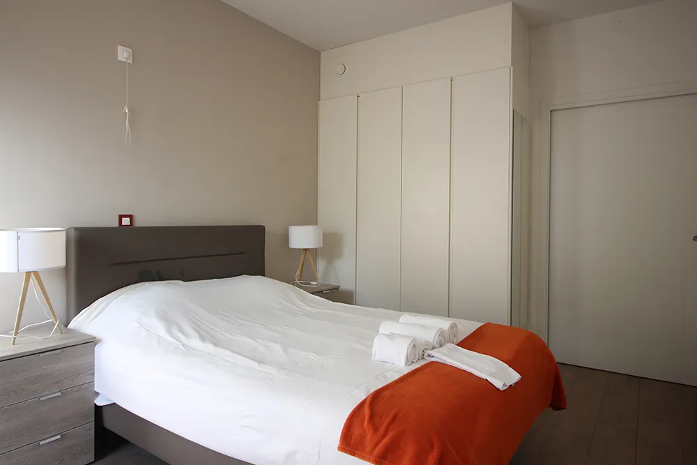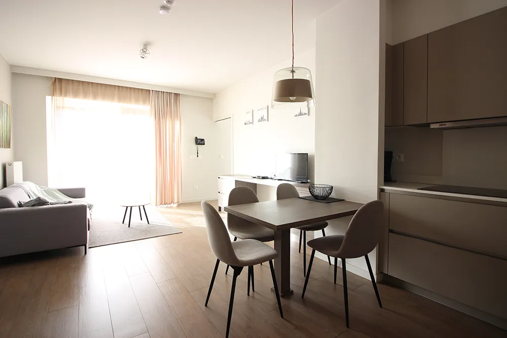 This furnished apartment is located in the Zilverhof residence, a residence where many apartments are rented out furnished to expats on a short-term basis with an attractive rental return. However, it is also possible to establish permanent residence (domicile) here, so this apartment is also suitable for owner-occupancy or long-term rental. The building, and therefore also the apartment, dates from 2016 and is therefore recent. The building has a contemporary look and this apartment is located on the southwest side and also has a pleasant terrace with the same orientation. The apartment has two bedrooms and a central living area with an open kitchen. The apartment also includes a storage room on the ground floor. A parking space must be purchased separately (asking price: 25,000 euros). The monthly charges for the building are approximately 125 euros/month + 15 euros/month reserve fund. The building is excellently managed and is extremely conveniently located in Diegem, in the economic heart of Belgium. The electricity is compliant and the EPC is favorable.