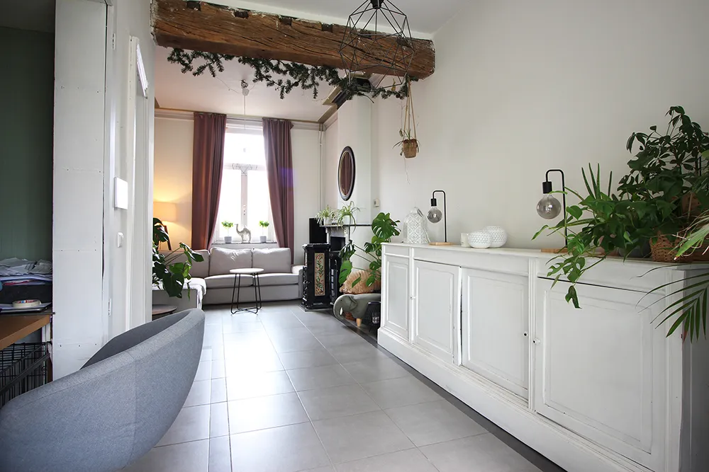 Charming house located near the Humbeek bridge. The ground floor consists of a spacious entrance hall (which can also be used as an office space), a kitchen and a cosy living room. At the rear, there is a beautiful extension that connects the kitchen and living room. On the first floor, there are three bedrooms and a bathroom. A fixed staircase leads to the spacious attic, which already has a water connection. Here, you could easily install additional bedrooms and a bathroom or create a pleasant hobby room. The spacious basement provides extra storage space. Behind and around the house is the garden, which is large enough to provide parking spaces if required. The house is centrally located and easily accessible via major roads. Shops, schools, etc. are all located in the vicinity.