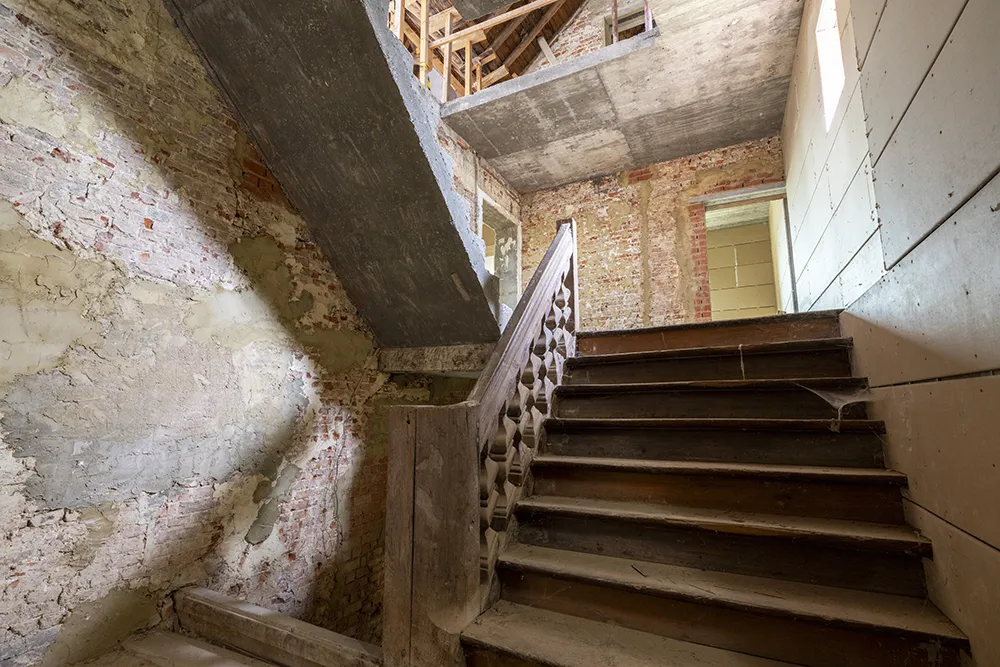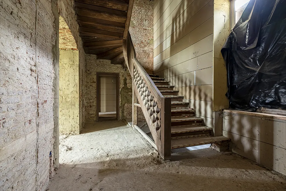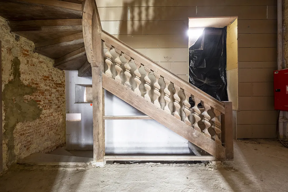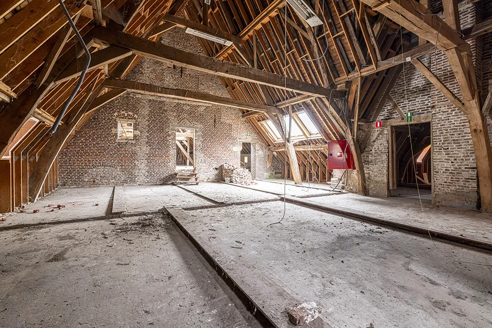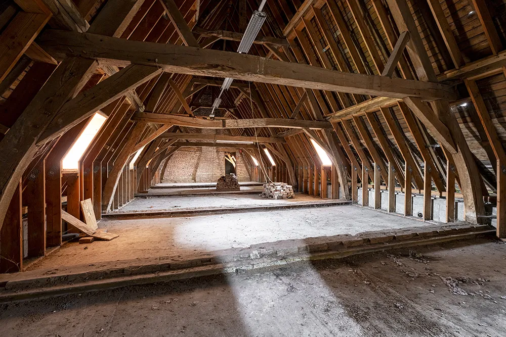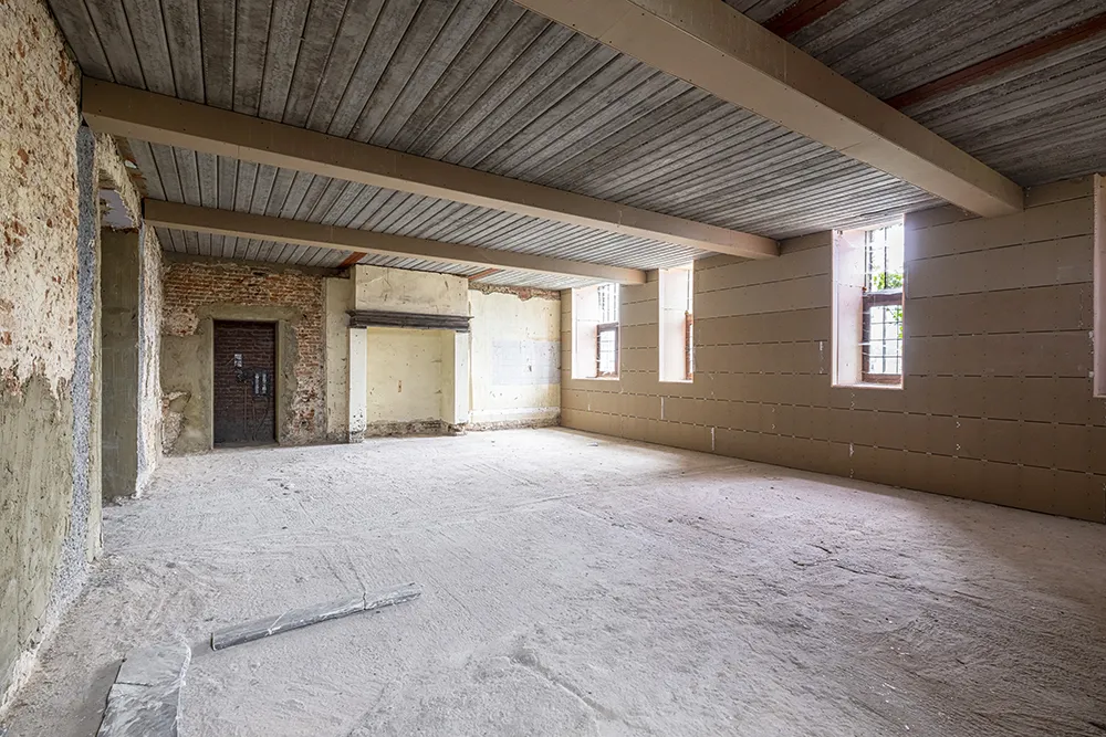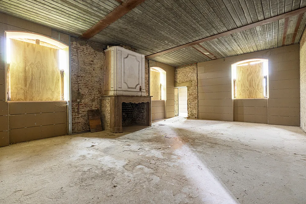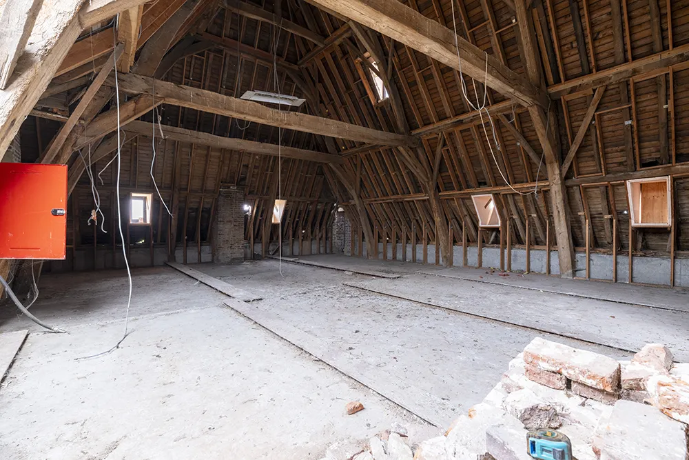 Several renovation works have recently been carried out, including: • Replacement of the wooden gratings with metal beams and concrete floors • Installation of insulation against most exterior walls, finished with plasterboard • Restoration of the roof structures