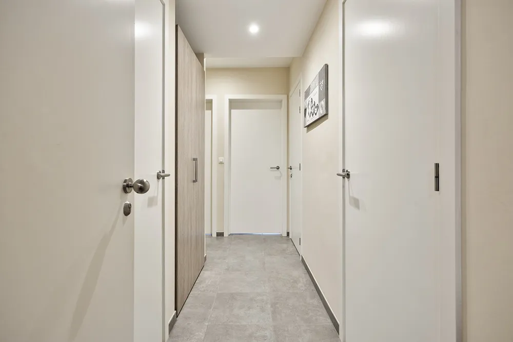 This ground floor apartment, located in the heart of Lier, combines comfort and a prime location close to shops, public transport, and all city amenities. The apartment has two comfortable bedrooms, a bright and spacious living room, and an open kitchen that is fully equipped with a dishwasher, combi-oven, and induction hob. The living room opens directly onto the southwest-facing terrace, an ideal place to relax and enjoy the sun. There is also a practical storage room inside the apartment and a bathroom with a shower.