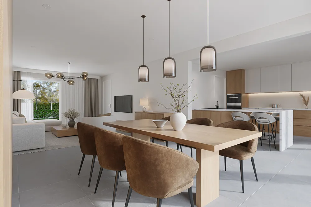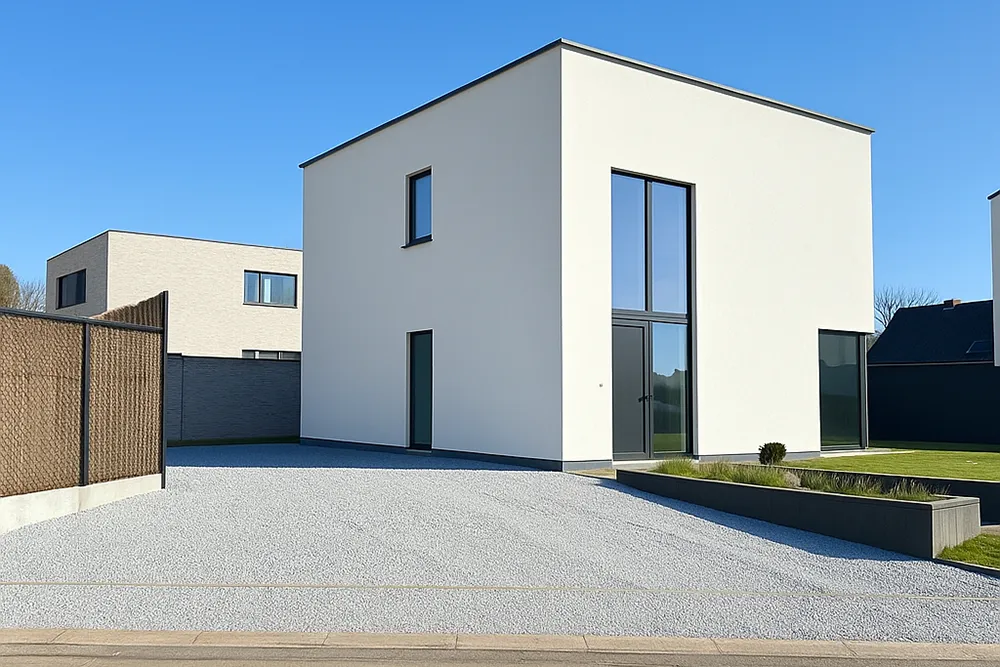 Cette villa moderne neuve est construite sur un terrain où se trouve actuellement une maison « à démolir ». Il est donc possible d'acheter la maison à un taux de TVA de 6 %. Le prix demandé pour la partie terrain de la maison est de 147 500 euros hors droits d'enregistrement et la partie construction s'élève à 374 923 euros hors TVA. La maison a un look épuré et sera entièrement livrée « clé en main ». Le prix demandé comprend donc la finition complète selon le cahier des charges (cahier des charges sur demande). Le terrain sur lequel la maison sera construite a une superficie d'environ 6 ares. Actuellement, le terrain fait partie d'un terrain plus vaste qui sera divisé en deux terrains à bâtir. Ce qui frappe dans la conception de la maison, ce sont les trois chambres très spacieuses (environ 15 m² chacune...). Il s'agit d'une maison neuve, donc en concertation avec l'acheteur, il est encore possible de s'écarter du projet et d'envisager des adaptations sur mesure. Bien entendu, l'acheteur aura également son mot à dire dans la finition de la maison, le choix des matériaux, la cuisine, la salle de bains, etc. Le chauffage est assuré par un système de chauffage par le sol à pompe à chaleur et la maison sera également équipée de panneaux solaires. En bref, une maison neuve moderne qui répond à toutes les exigences actuelles en matière de confort et d'énergie, etc.