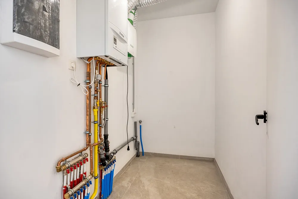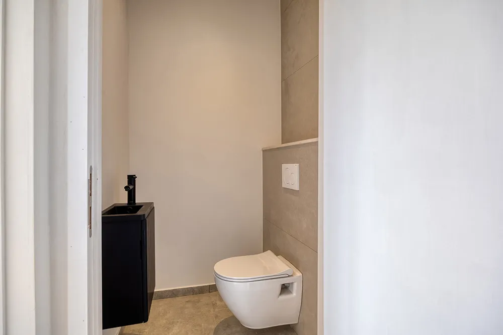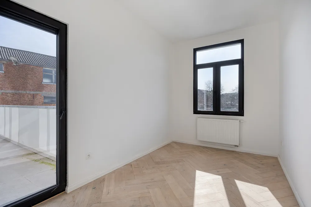 This recently renovated flat is located on the first floor of a building with six flats. The entire building has been renovated from top to bottom, both externally and internally, with an eye for style and quality. This flat has three spacious bedrooms, a beautiful living area with open kitchen, bathroom, storage room and terrace. There is also a bicycle storage room and a parking space can be purchased as an option. There are no charges and all meters are individual.