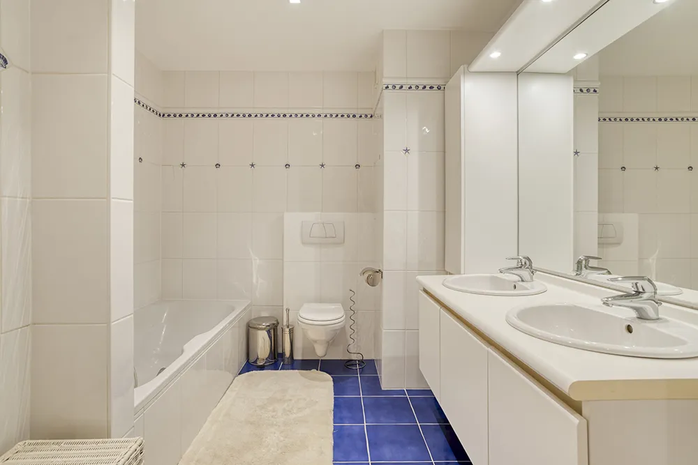 * Salle de bains supplémentaire avec baignoire, double lavabo et WC suspendu