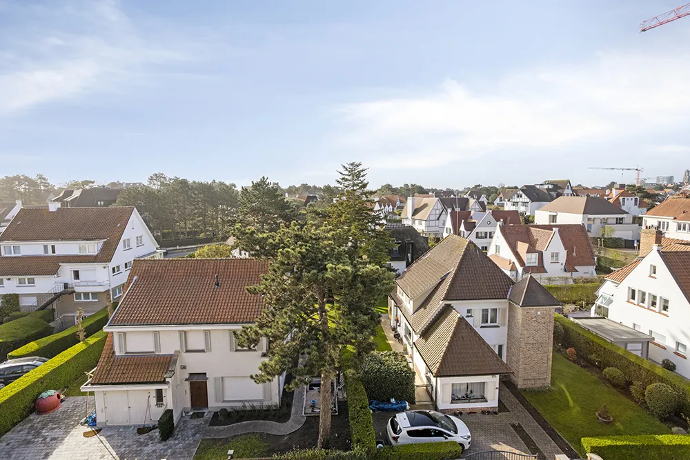 Ce magnifique appartement en duplex (116 m²) allie espace, lumière et fonctionnalité de manière très réfléchie. Grâce à son orientation sud, vous profitez toute la journée d’une lumière naturelle abondante et d’une vue dégagée sur les villas du Zoute, vous offrant ainsi un aperçu de l’expérience verdoyante et mondaine que propose Knokke.