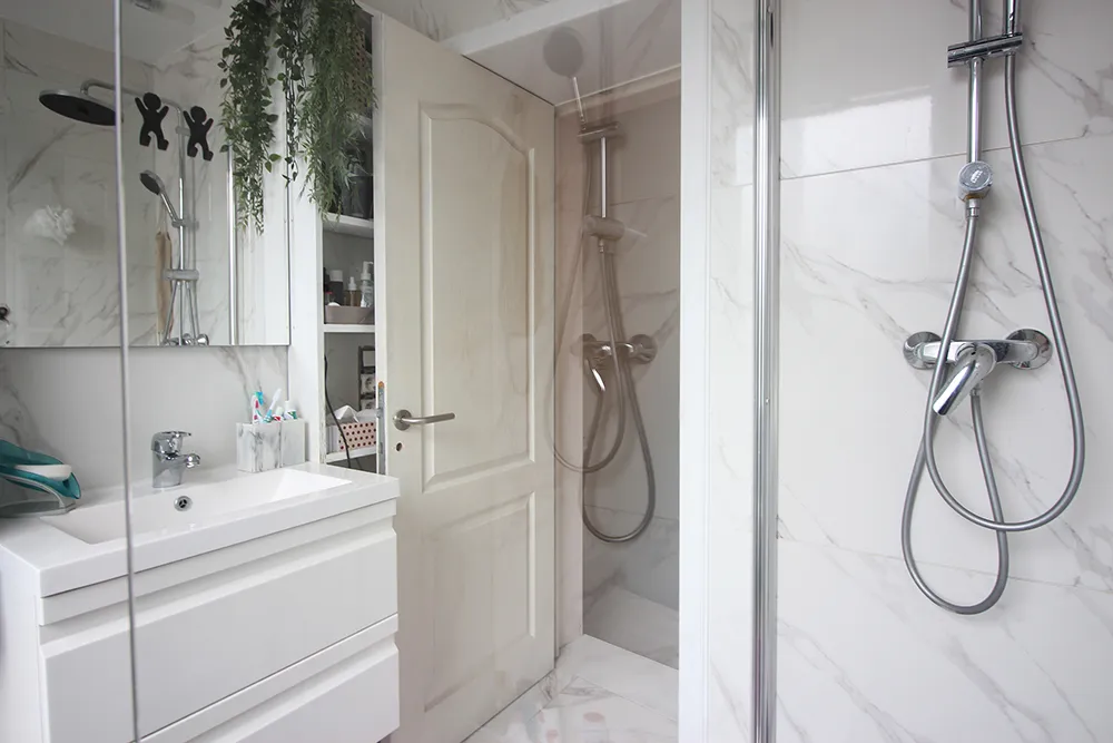 Au premier étage vous disposerez de 3 belles chambres et d'une sdb avec douche italienne et lavabo.