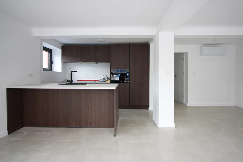 Dit appartement is gelegen in een appartementsgebouw dat in 2025 tot op de blote structuur volledig gestript en gerenoveerd werd naar een energiezuinig appartement (A-label) met warmtepomp en individuele zonnepanelen. Een gloednieuwe keuken, badkamer, … alles is spiksplinternieuw en nog nooit gebruikt. Dit gelijkvloers appartement heeft een ruime living met open keuken (35m2), twee slaapkamers (13m2 en 14,5m2) een badkamer met douche en dubbele wastafel. Verder is er een apart gastentoilet en een aparte wasplaats/berging. In het gebouw is ook een fietsenstalling waar dit appartement zijn eigen individueel aangesloten stopcontact heeft (ideaal voor opladen, elektrische fiets(en)). Bij het appartement dient eveneens verplicht een (bredere) autostaanplaats in de garage gehuurd te worden met plaats voor opbergrekken (90 euro/maand) waar tevens bekabeling voorzien is voor een individueel laadpunt (elektrische wagen). De maandelijkse lasten in het gebouw zijn met 25 euro/maand zeer laag. Alle meters zijn individueel (water en elektriciteit) met dus ook zonnepanelen erop. Dit gebouw is ook nog eens gelegen in een zeer gegeerde buurt van Leuven/ Kessel-Lo, achter het station. Het appartement is beschikbaar vanaf 1 december 2025.