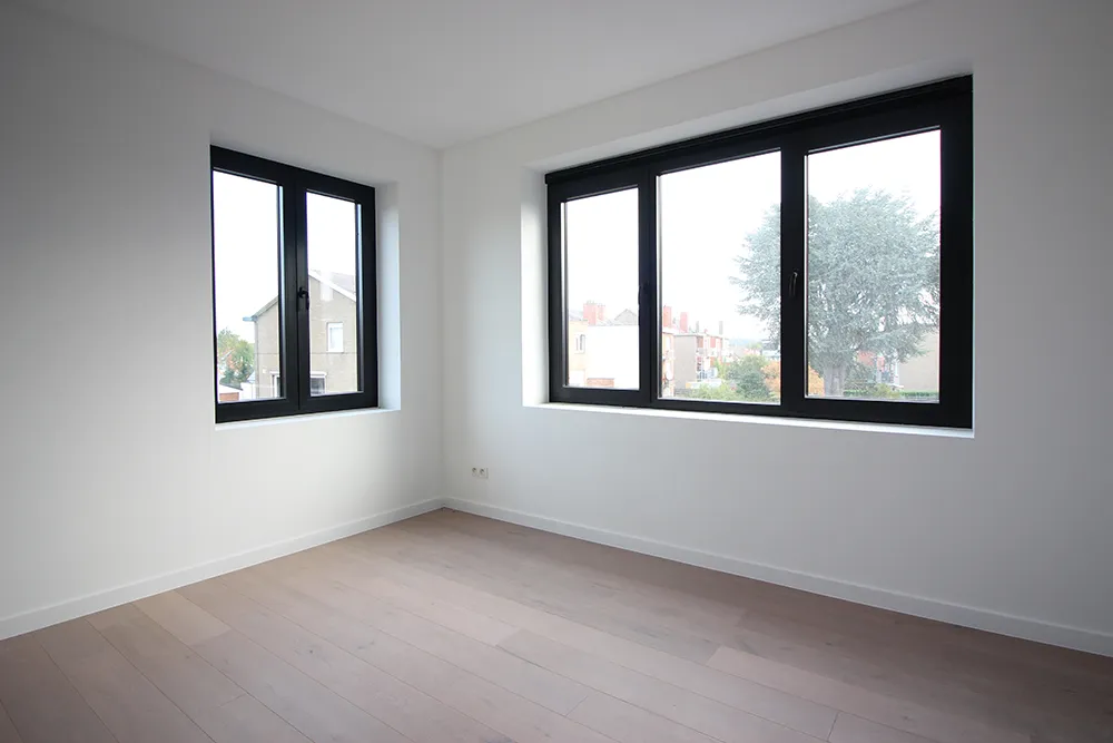 Dit appartement is gelegen op de eerste of tweede verdieping (2 appartementen beschikbaar) in een appartementsgebouw dat in 2025 tot op de blote structuur volledig gestript en gerenoveerd werd naar een energiezuinig appartement (A-label) met warmtepomp en individuele zonnepanelen. Een gloednieuwe keuken, badkamer, … alles is spiksplinternieuw en nog nooit gebruikt. Dit appartement heeft een ruime living met open keuken (30m2), twee slaapkamers (14m2 en 8m2), een badkamer met douche en dubbele wastafel. Verder is er ook nog een apart gastentoilet en aansluitingen wasmachine. In het gebouw is ook een fietsenstalling waar dit appartement zijn eigen individueel aangesloten stopcontact heeft (ideaal voor opladen, elektrische fiets(en)). Bij het appartement dient eveneens verplicht een autostaanplaats in de garage alsook een afzonderlijke privatieve berging gehuurd te worden (samen 100 euro/maand). Bij de autostaanplaats is tevens bekabeling voorzien voor een individueel laadpunt (elektrische wagen). De maandelijkse lasten in het gebouw zijn met 25 euro/maand zeer laag. Alle meters zijn individueel (water en elektriciteit) met dus ook zonnepanelen erop. Dit gebouw is ook nog eens gelegen in een zeer gegeerde buurt van Leuven/ Kessel-Lo, achter het station. Het appartement is beschikbaar vanaf 1 december 2025.