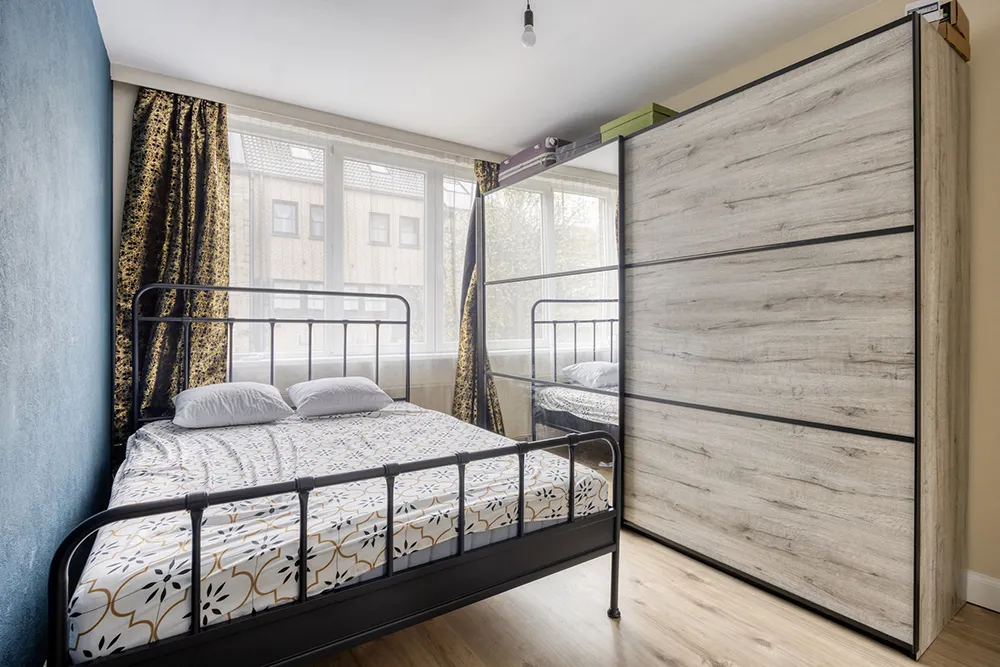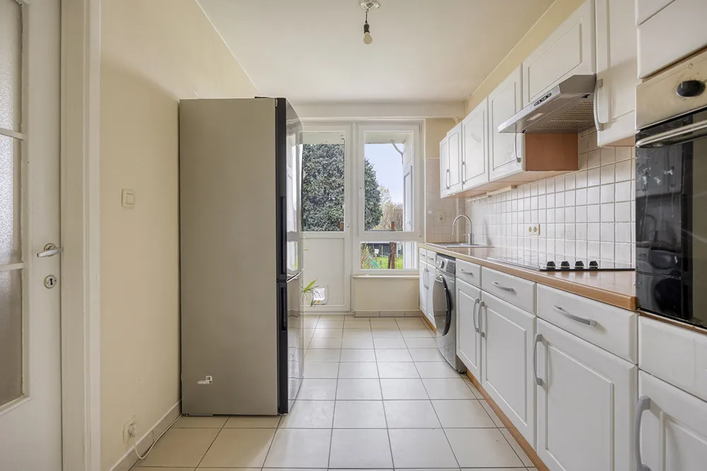 Het is in 2023 gerenoveerd en bestaat uit een mooie, lichte woonkamer met parketvloer, een aparte, volledig uitgeruste keuken en twee mooie slaapkamers van elk 13 m². De badkamer is voorzien van een inloopdouche en een wastafel. Apart toilet. Er is ook een kelder.