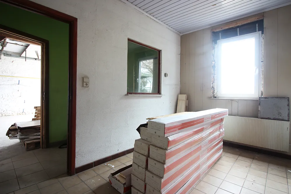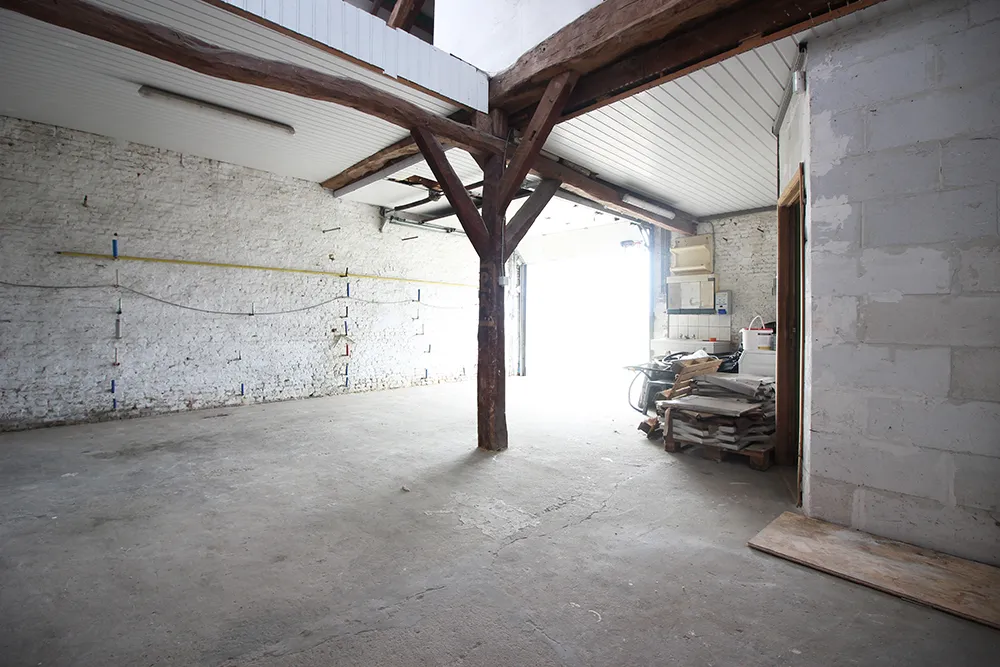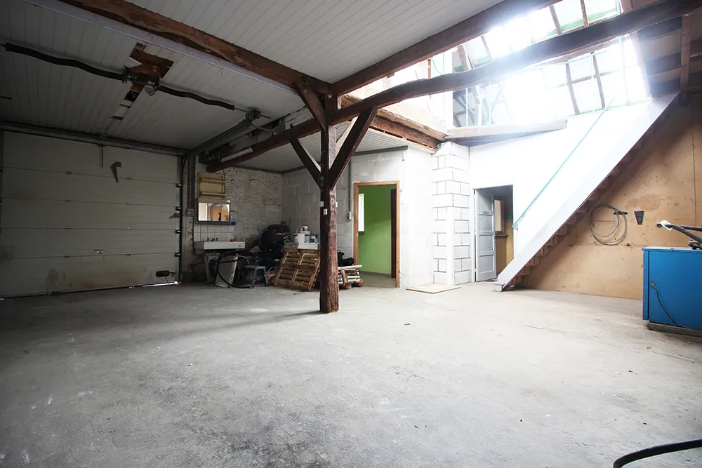 Bij de woning hoort een magazijn/werkplaats van 120m2 dat nog verder naar eigen noden ingericht kan worden. De werkplaats heeft een zeer ruime parking.