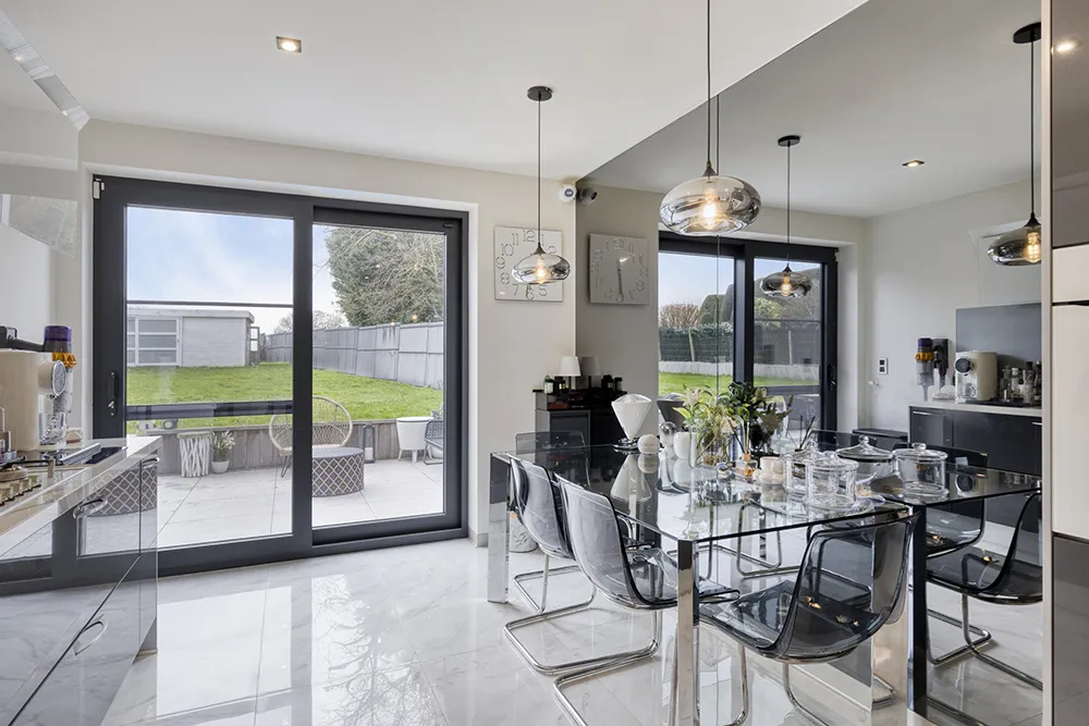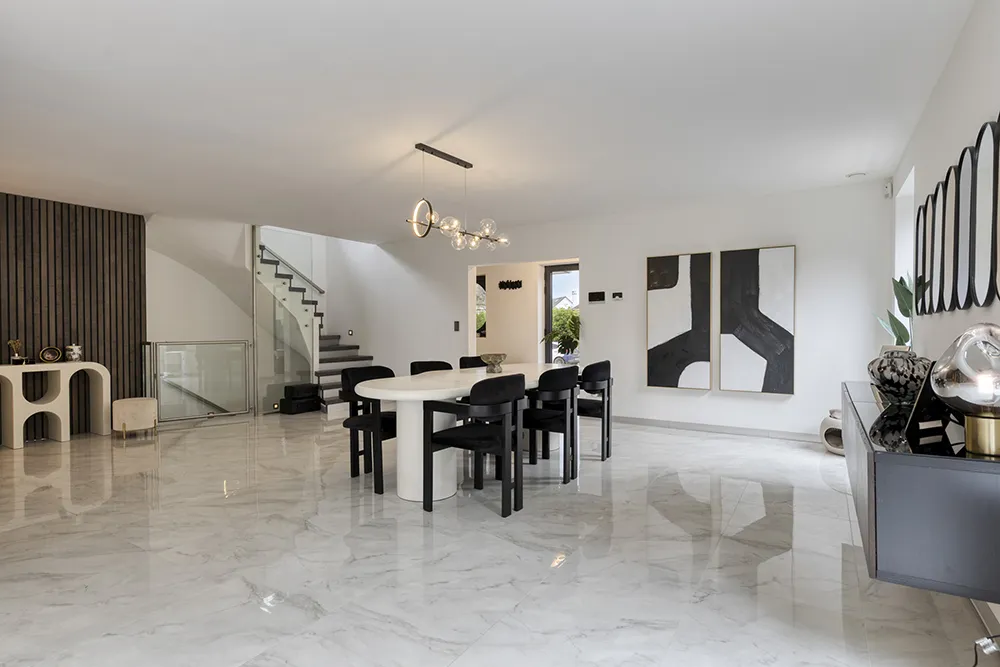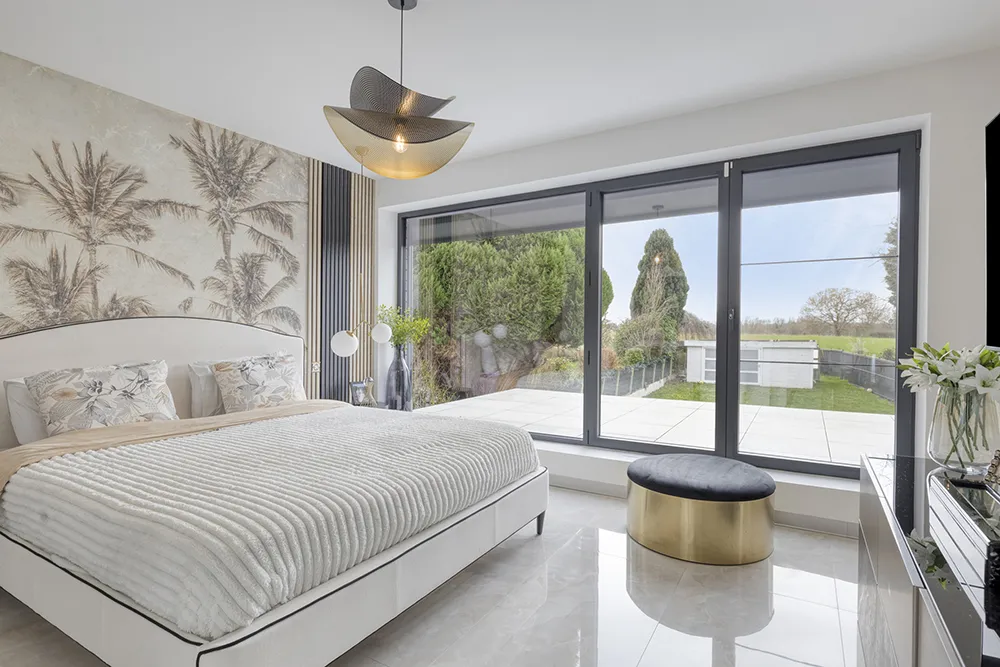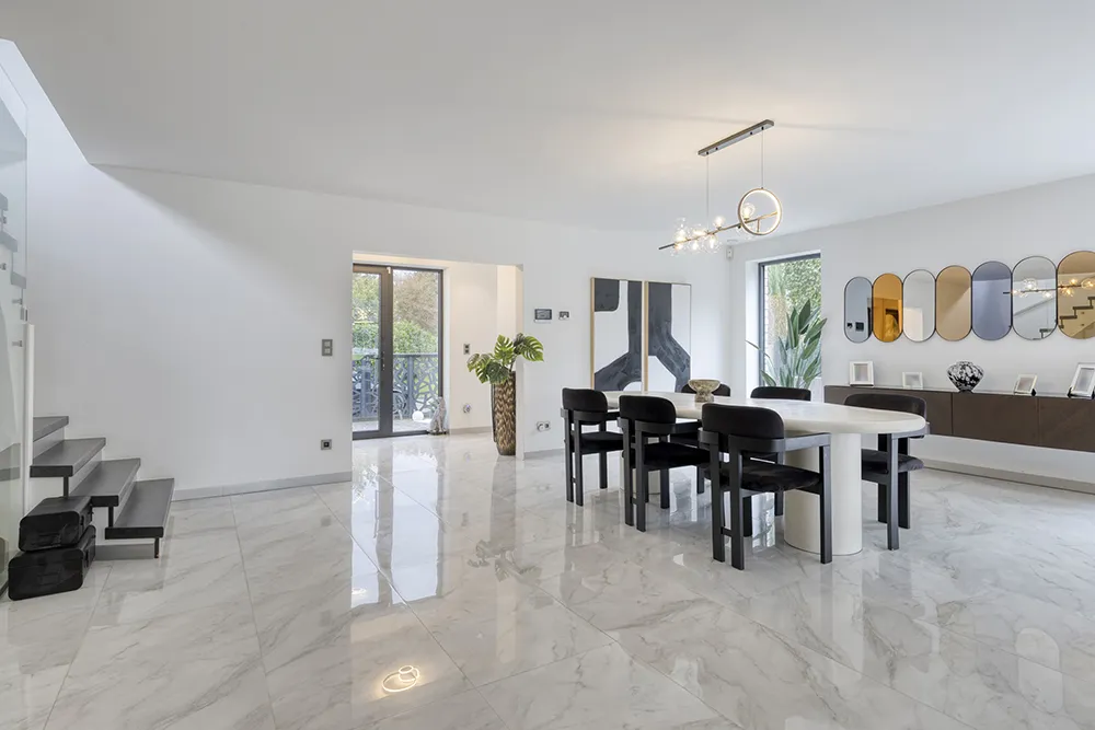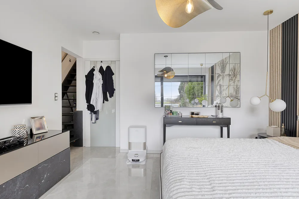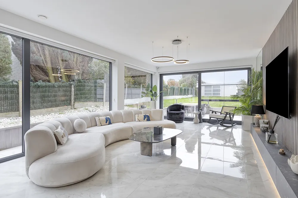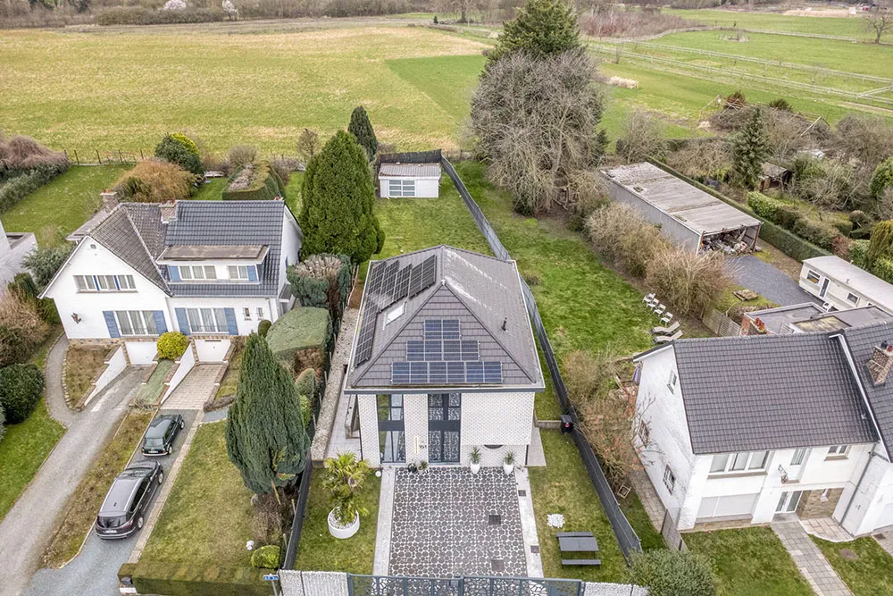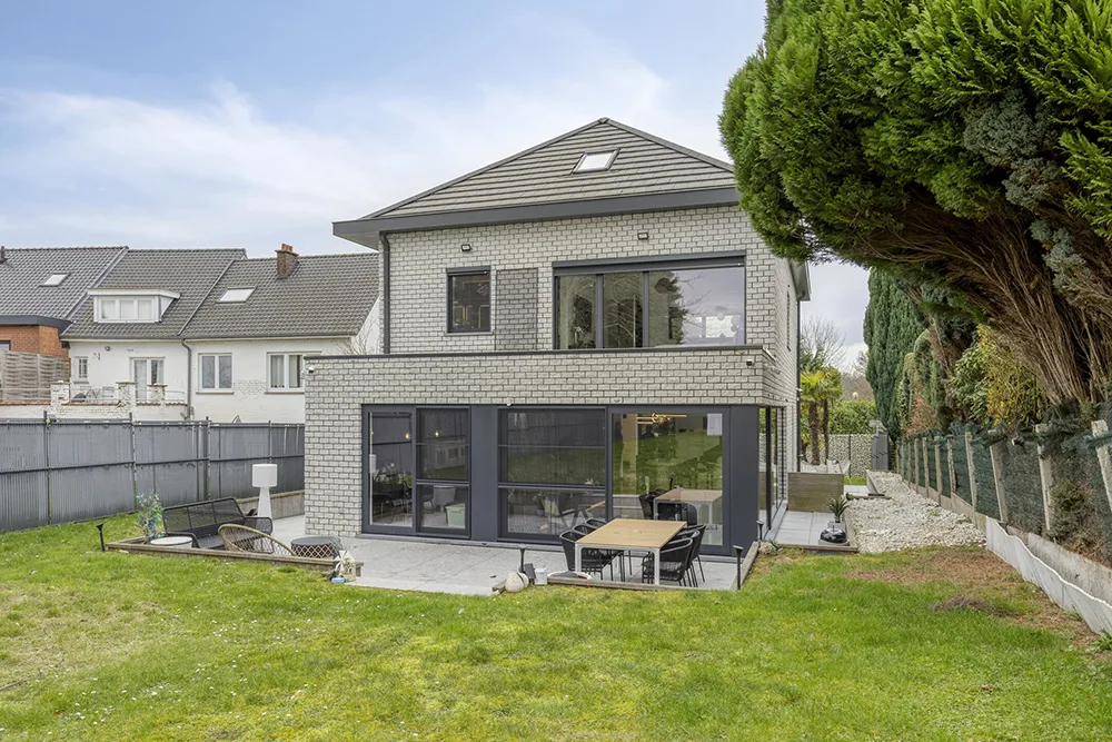 Moderne, energiezuinige villa met royale volumes, hoogwaardige afwerking en grote raampartijen die zorgen voor uitzonderlijk veel natuurlijke lichtinval.