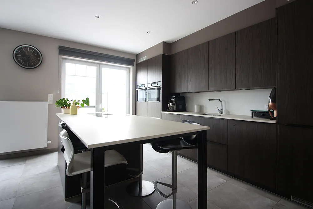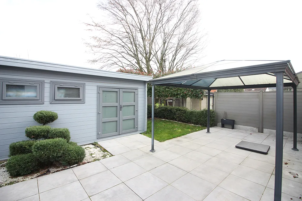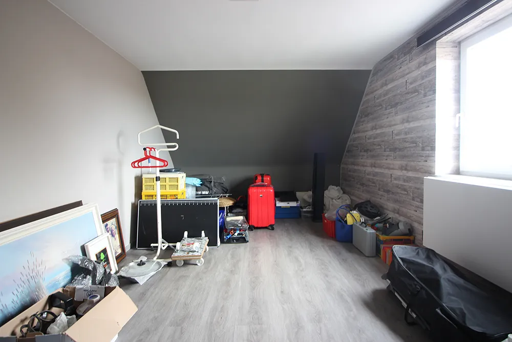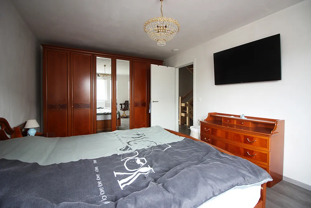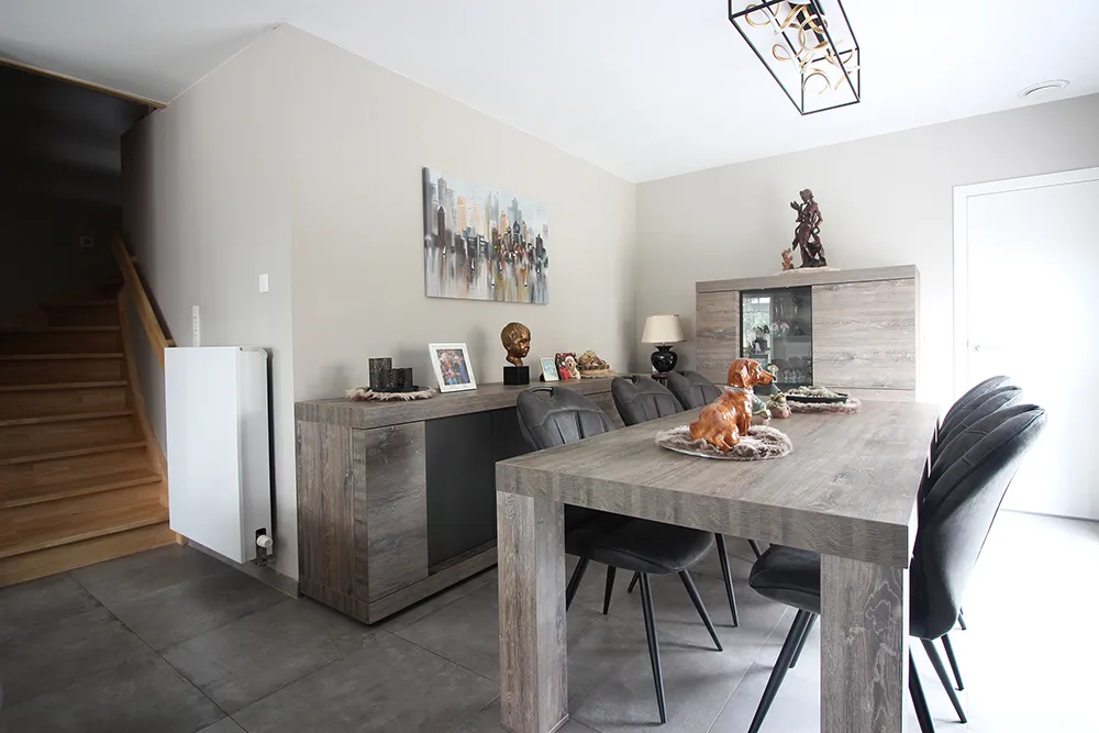 Deze recente woning van 2019 is gelegen in een gegeerde residentiële buurt en biedt alles wat een gezin nodig heeft. Met zijn 210m2 bewoonbare oppervlakte, 4 slaapkamers (potentieel 5 zelfs) is ze alvast heel ruim. Op het gelijkvloers komen we binnen via de inkomhal met een apart gastentoilet. De leefruimte is met zijn 38m2 en open volledig geïnstalleerde keuken ruim en door de vele ramen ook lumineus. Op het gelijkvloers is er verder nog een garage. Op de eerste verdieping zjin er drie slaapkamers en een ruime badkamer met zowel ligbad, douche alsook een wastafel met twee lavabo’s. Op de bovenste verdieping is er nog een vierde zeer ruime kamer (die eventueel nog gesplitst zou kunnen worden in een vijfde kamer) en een berging waar ook de technieken (ventilatiesysteem) zich bevinden. De woning heeft een uitstekende EPC A-score, een conform elektriciteitsattest, regenwaterput en voldoet aan alle hedendaagse wooncomfort. Het terrein rondom de woning is ingedeeld in een aangename tuin met terras en tuinhuis en een zeer ruime oprit en voortuin die plaats biedt voor minstens 3 wagens. Naast de woning is er eveneens de optie om nog een carport te plaatsen. Kortom, een instapklare woning die je zeker eens moet bezoeken!