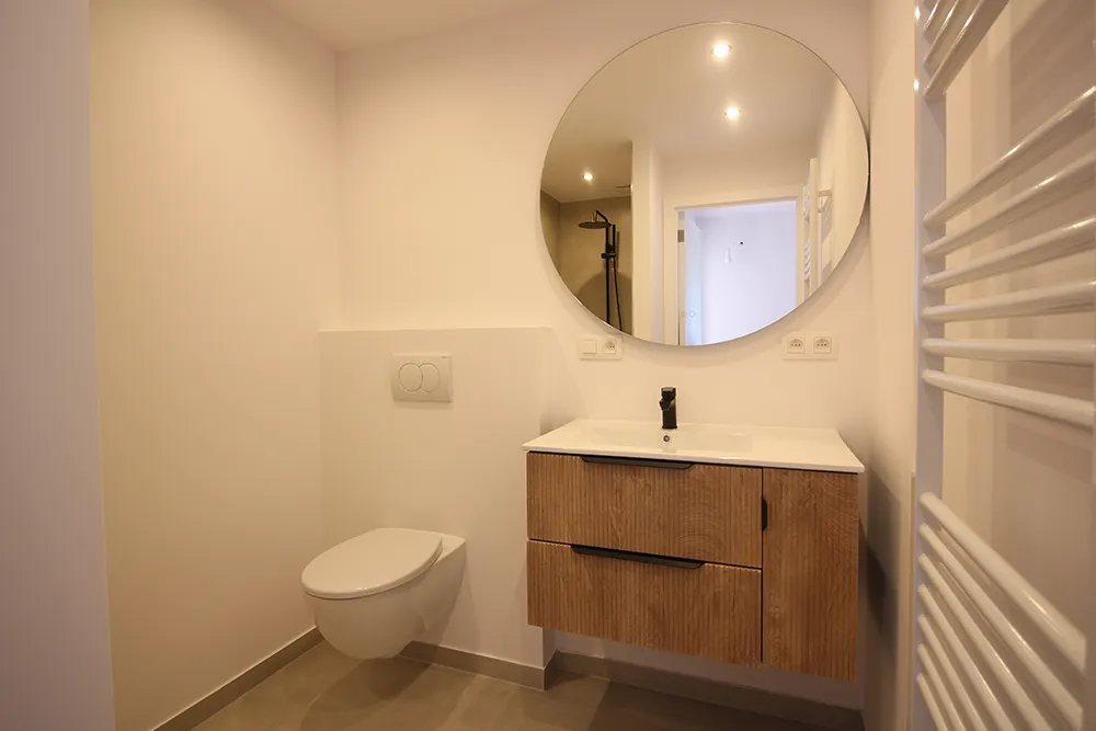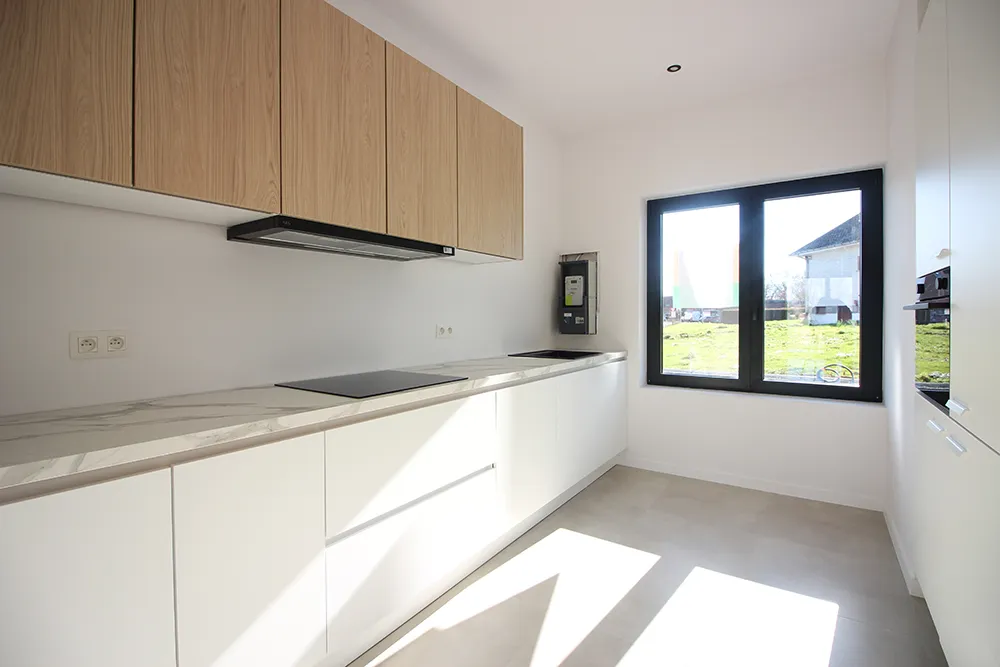 Op de foto’s in deze advertentie is de keuken nog niet volledig afgewerkt (dit gebeurt tegen het verlijden van de akte en na verplaatsing elektriciteitsmeter naar de berging).